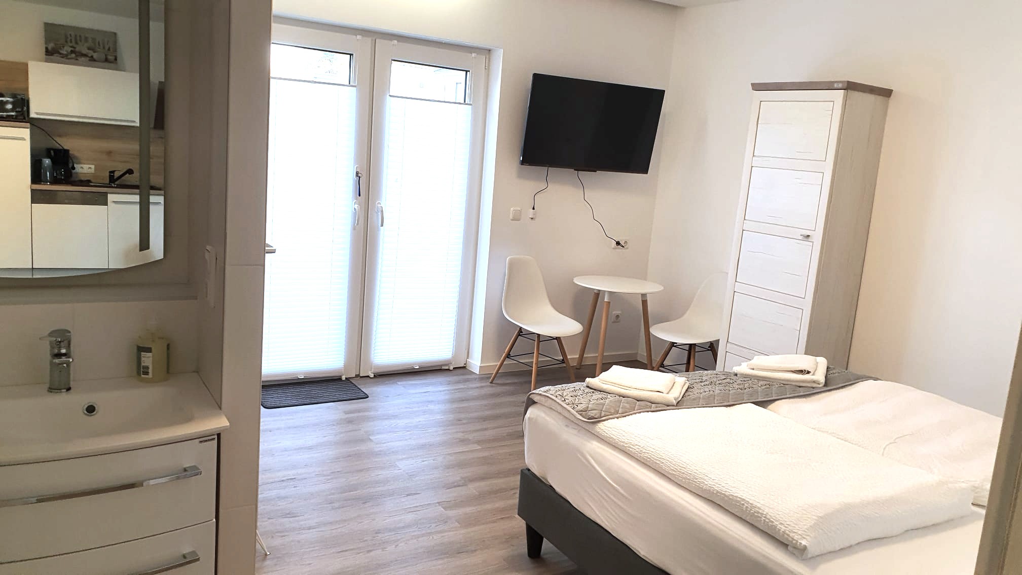 Wir haben zwei Zimmer in gleicher Größe und jeweils mit Bad zur Auswahl. Wählen Sie einfach die Inneneinrichtung, die Ihnen besser gefällt.